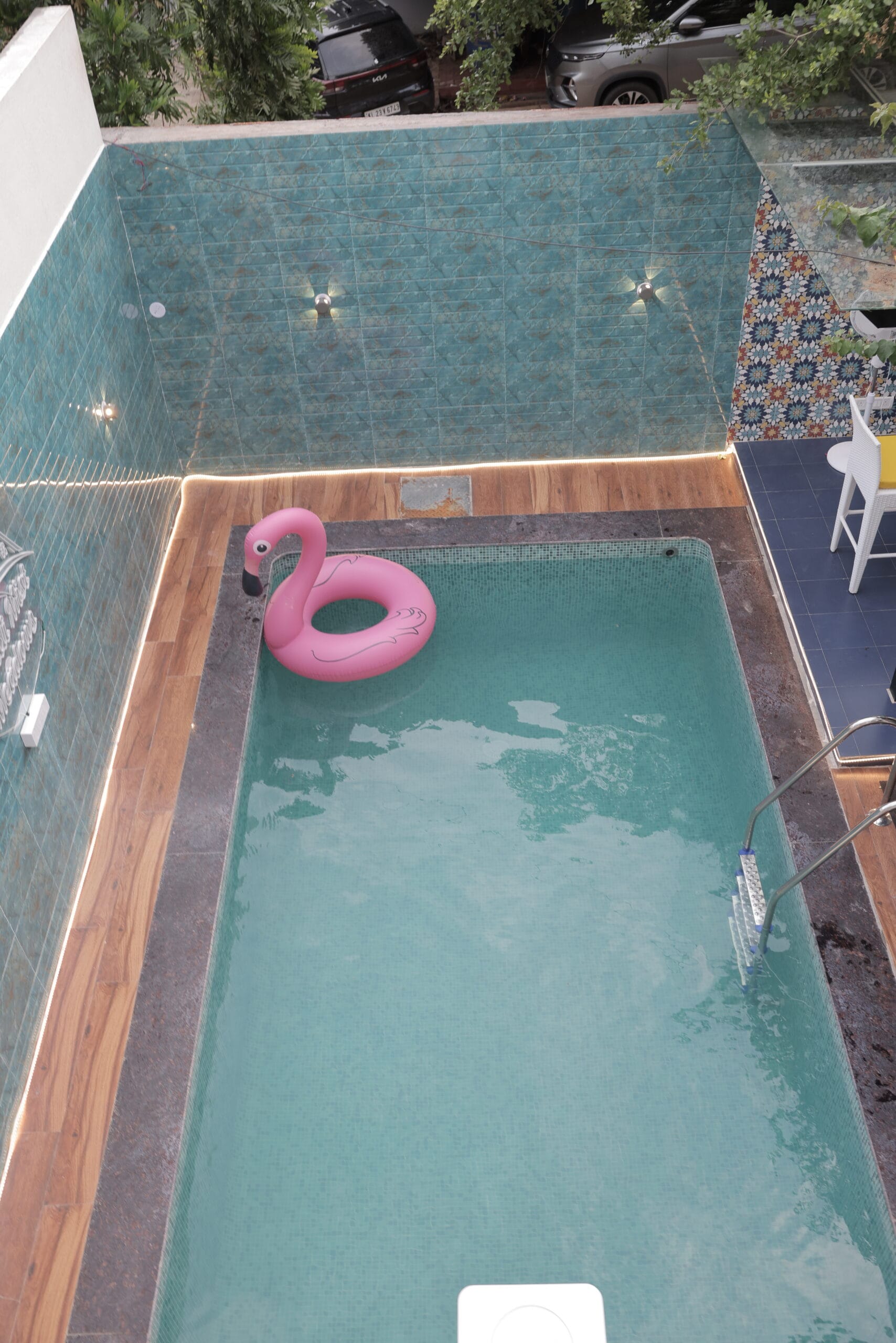 You can cook and have a feast. Pool is well maintained. first floor has a nice hill view. On second floor also has a good view. We played card's. Helper was good and she cooked good chicken for us. Host was so caring called us often to check the comfort. Overall very good place to stay with family and friends 🧡.